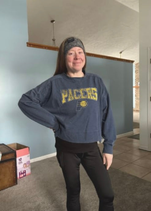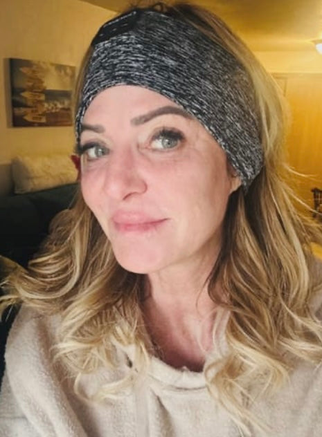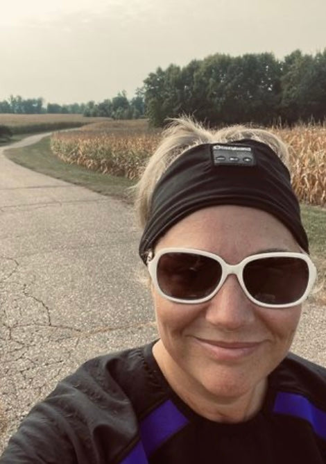 Headband on, going out for a walk listening to an audiobook.It's better than my Bluetooth headphones that keep falling out!